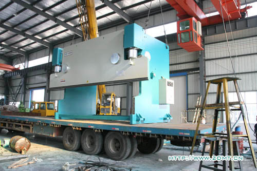 由于機(jī)器體積較大,高度超過3.5米,重量在50噸以上,所以采用了分體式運(yùn)輸,工作臺與機(jī)器主體分離開來。這種大型機(jī)床由于其體積與重量的關(guān)系,并不是很常見,需求量相對來講少點,而對制造商的要求也相對比較高,其中無不體現(xiàn)中德產(chǎn)品在客戶心目中認(rèn)可度!